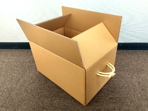 - その他 短側面に手掛け紐を付けた運搬用段ボール(フラップ有タイプ)です。持ちやすく、重量物も安心して梱包可能。倉庫作業やオフィス移転など幅広い場面で活躍します。補強入りで耐久性が高く、繰り返し使用できます。