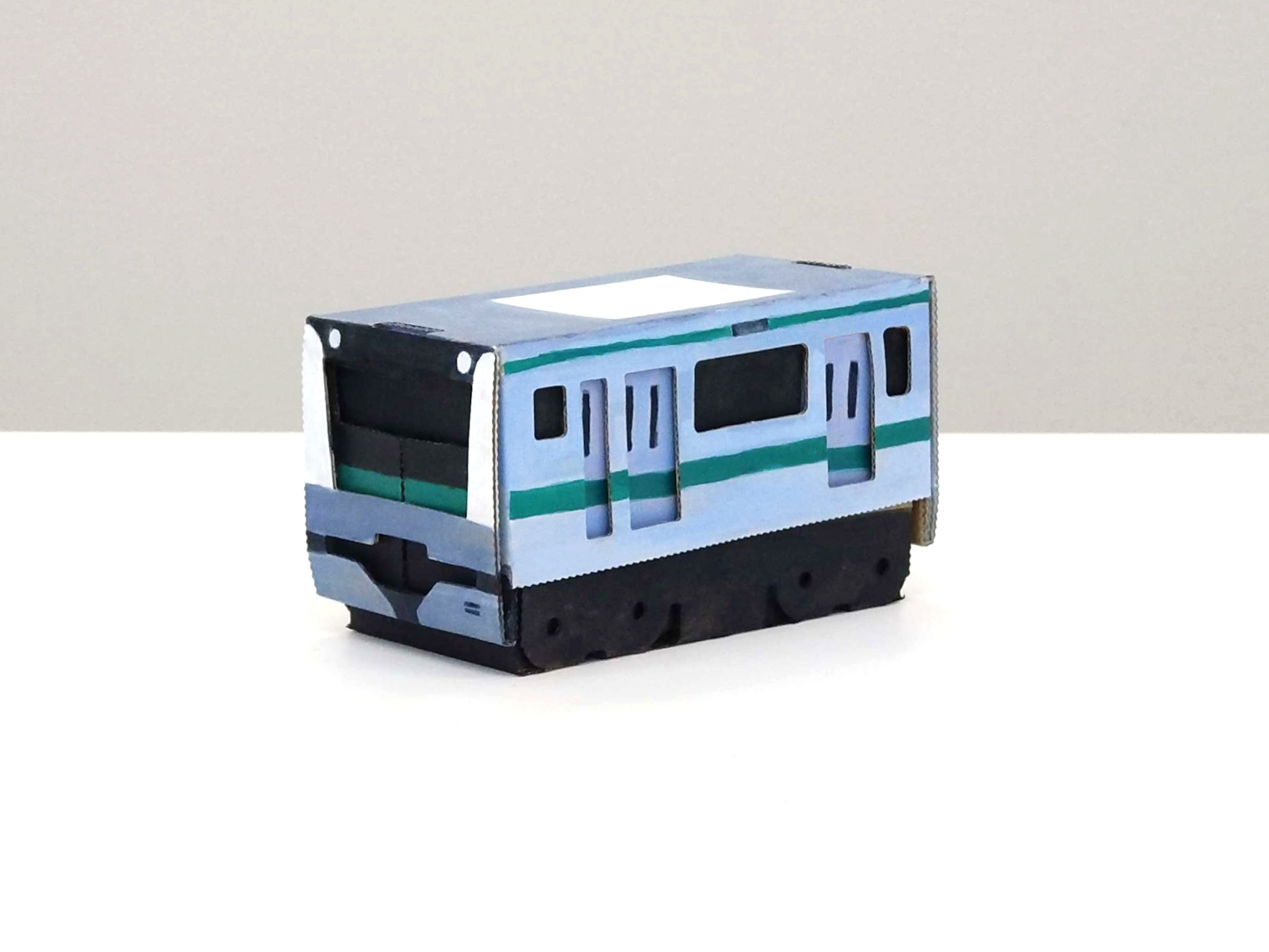 -  その他 E233系をモチーフにした小物入れです。身とフタそれぞれ1パーツずつでできており、接着剤やハサミを使わずに組み立てることができます。