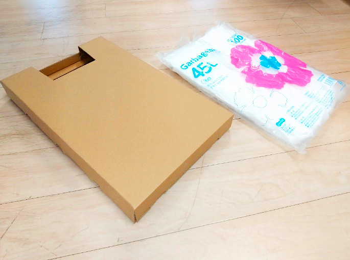 - その他 45Lのゴミ袋を収納し、保管しておける収納ケースです。立てかけておき、使用時は1枚ずつ取り出すことができます。組立は差込形式の為、接着剤等も必要ありません。